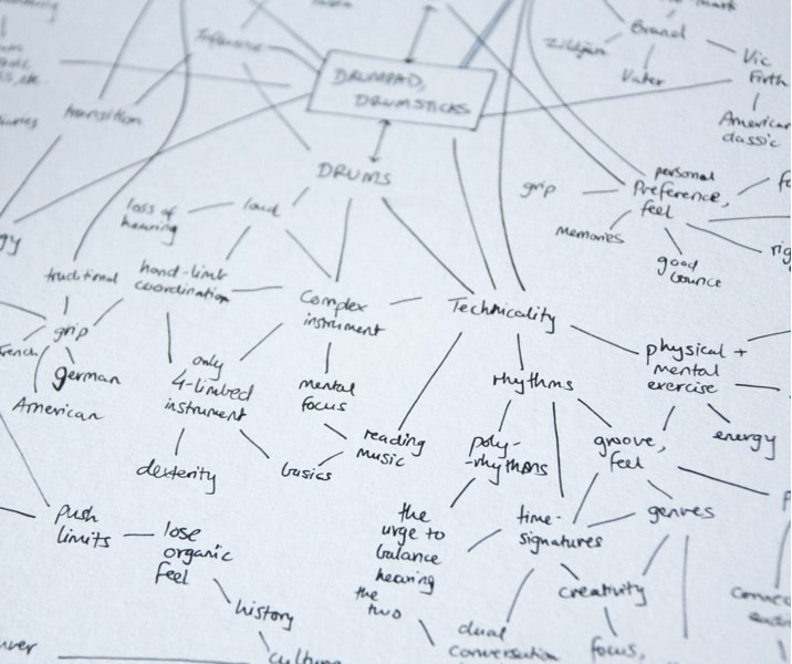 I had so much to say about drumming. This was the first time I had ever mapped a string of heartfelt memories on paper. Deep introspection in the design phase was a powerful tool.